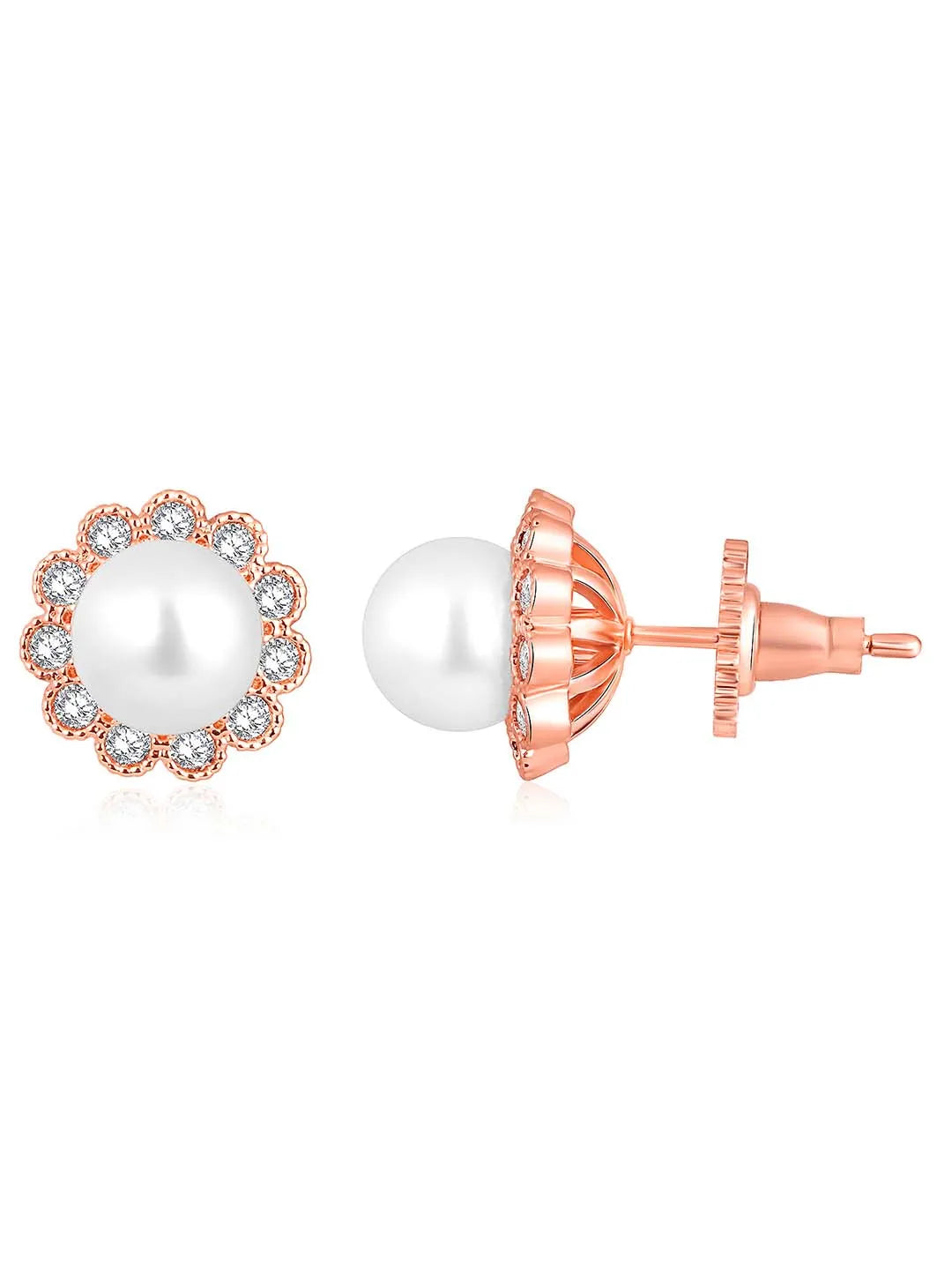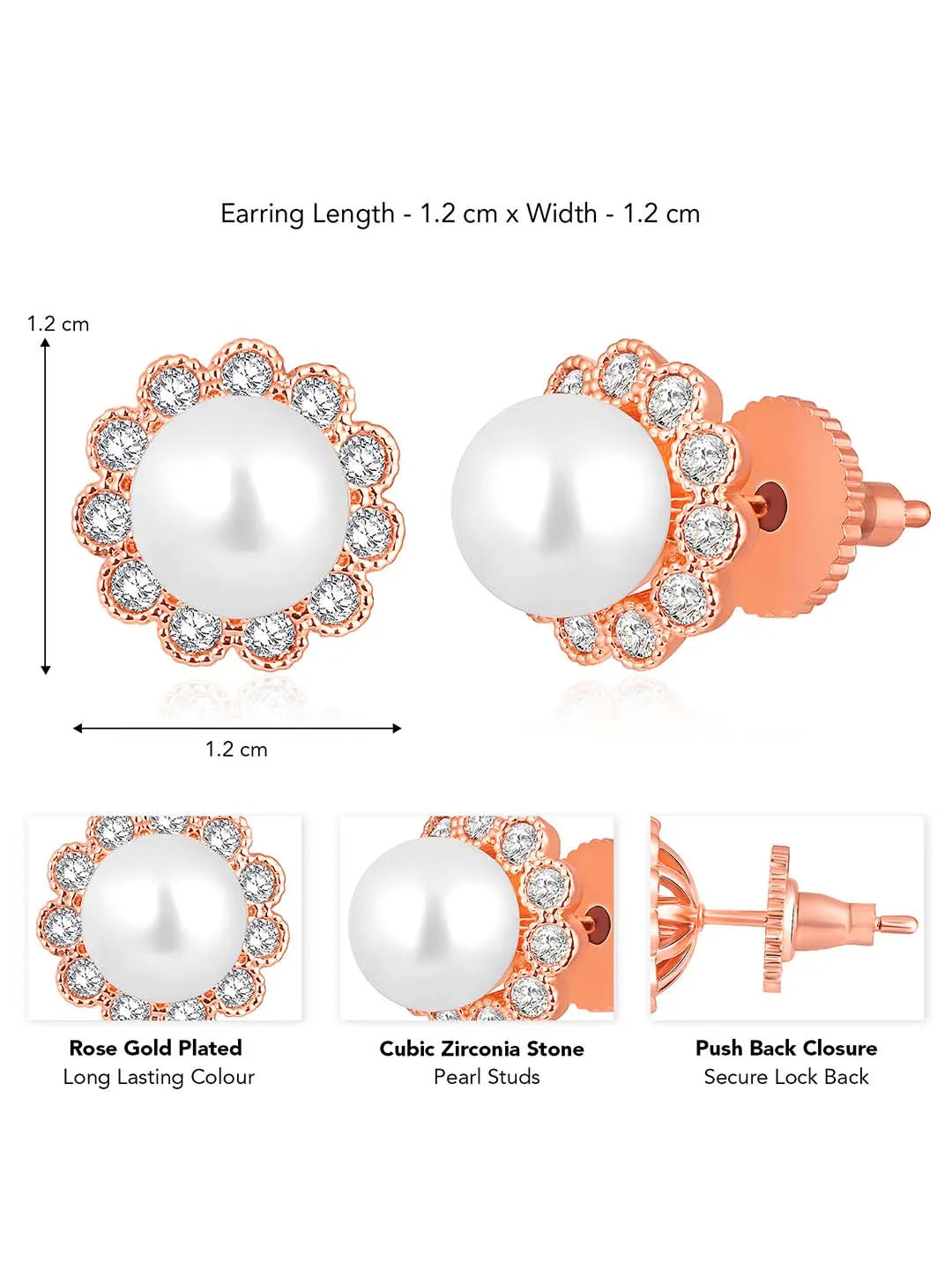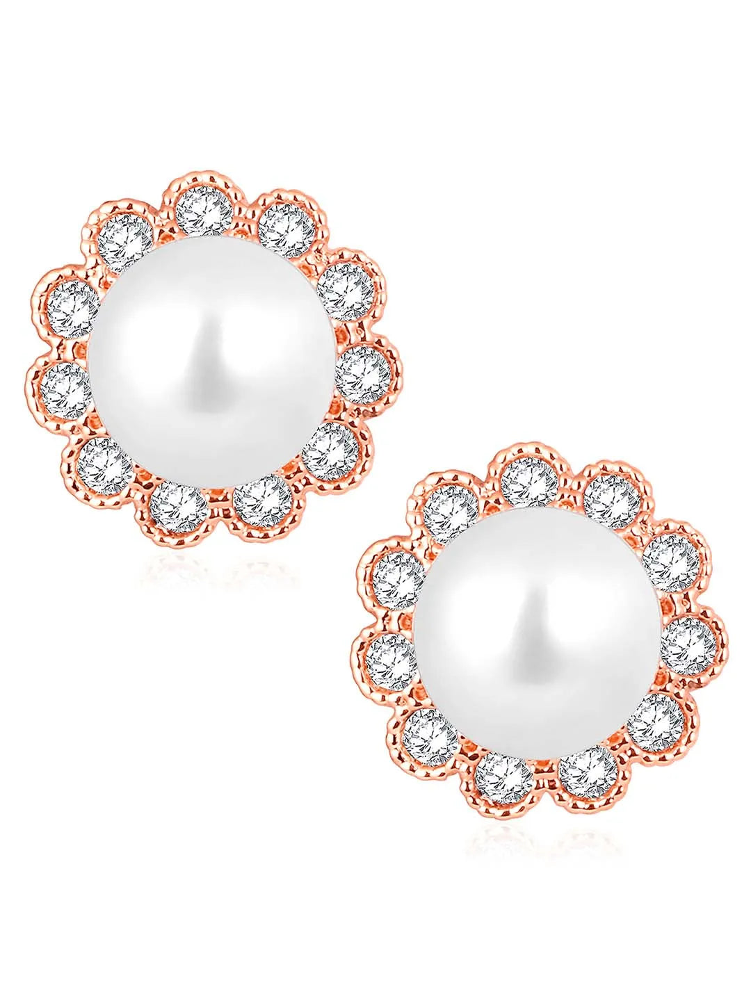 Product Name: Stylish Simplicity CZ Pearl Studs - Rose Gold