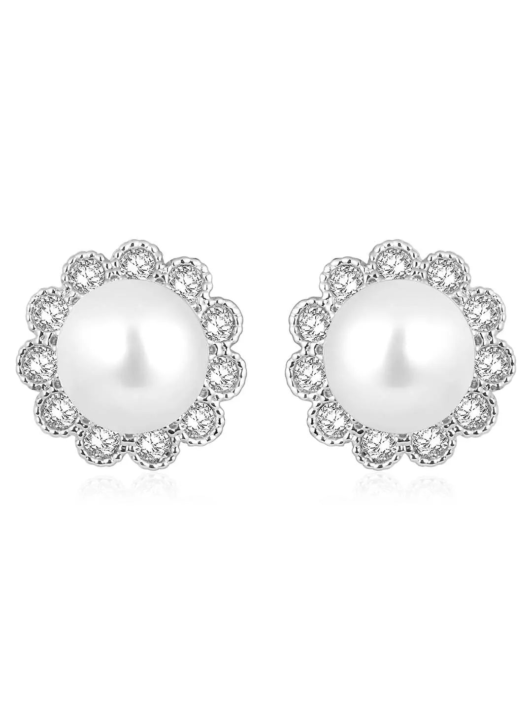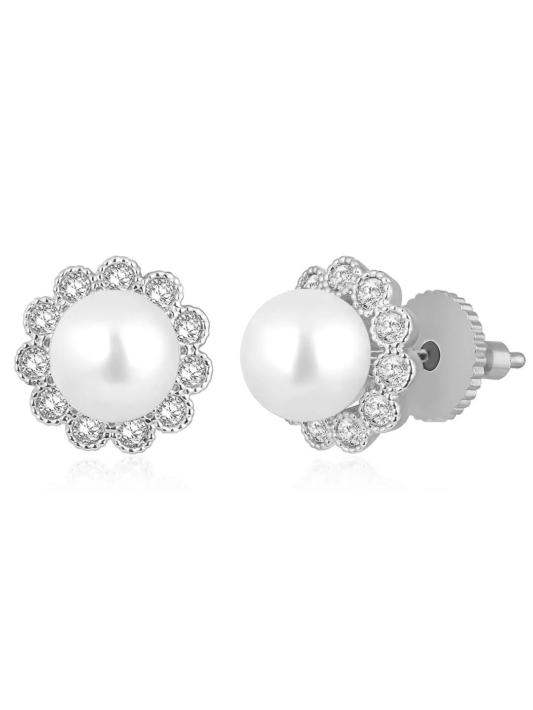 Product Name: Stylish Simplicity CZ Pearl Studs - Silver