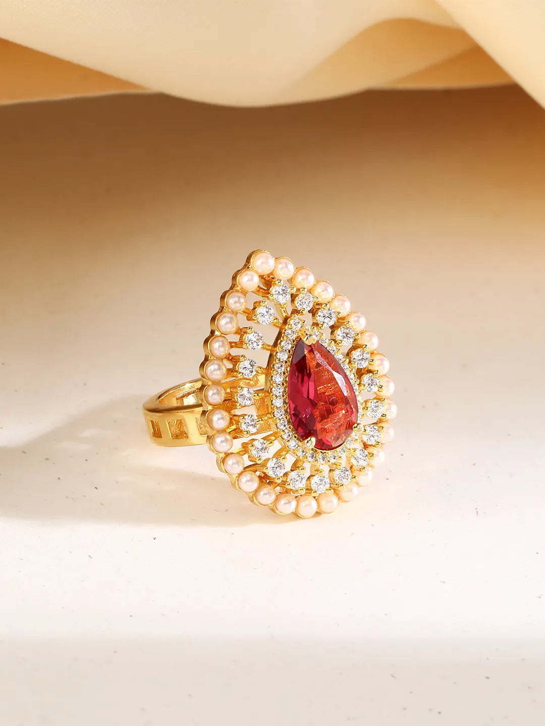 Product Name: Teardrop CZ with Pearl Stud Ring