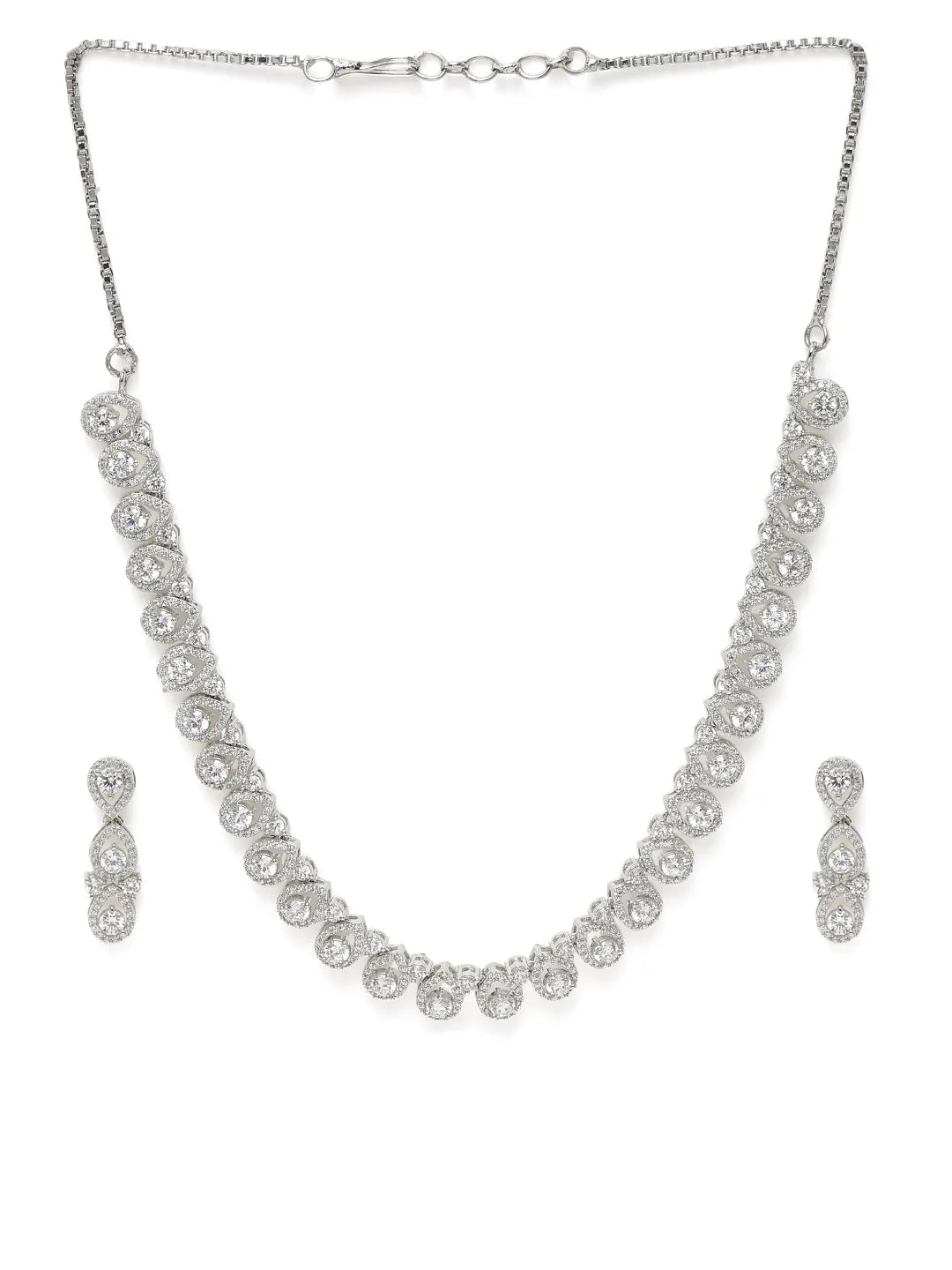 Product Name: Teardrop Shaped CZ Necklace Earring Set - Silver