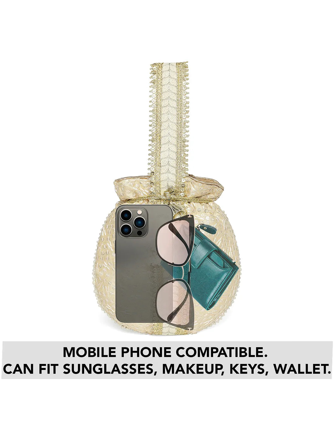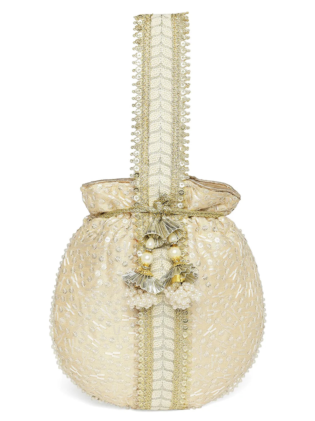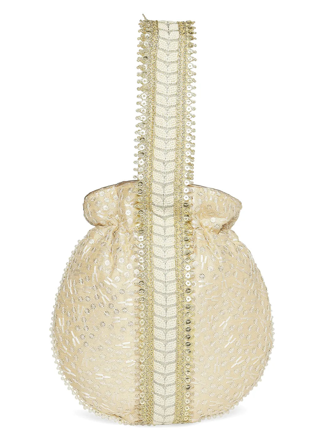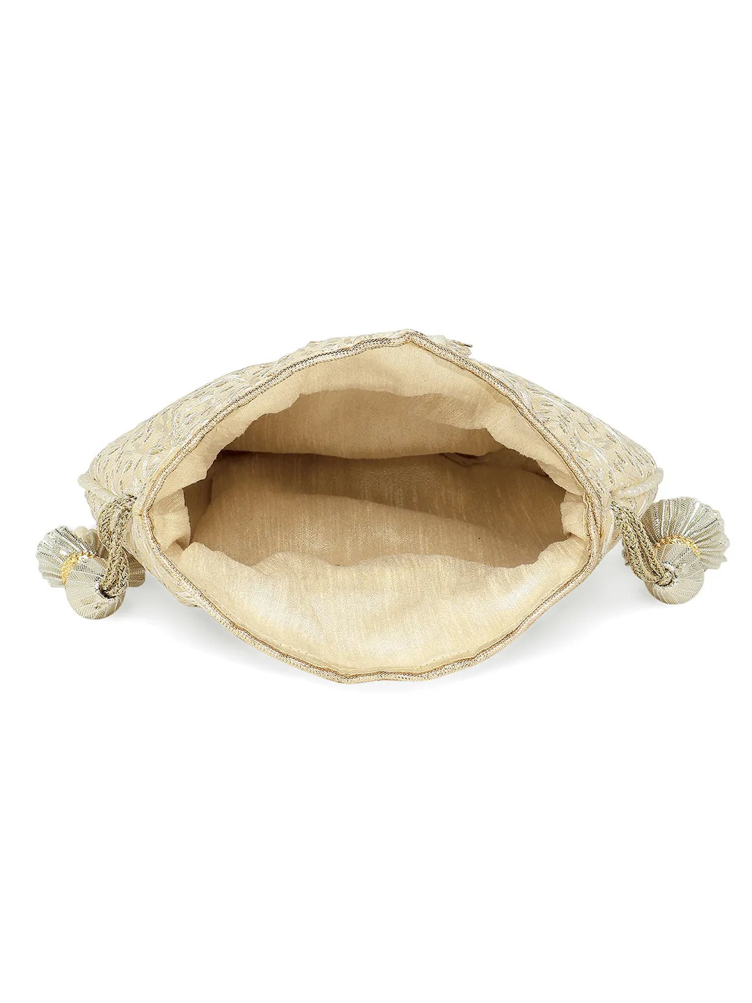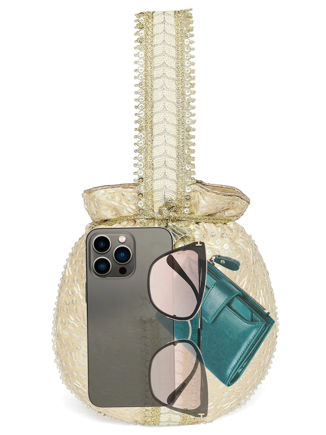 Product Name: Textile Charm Embroidery Potli Bag - Gold