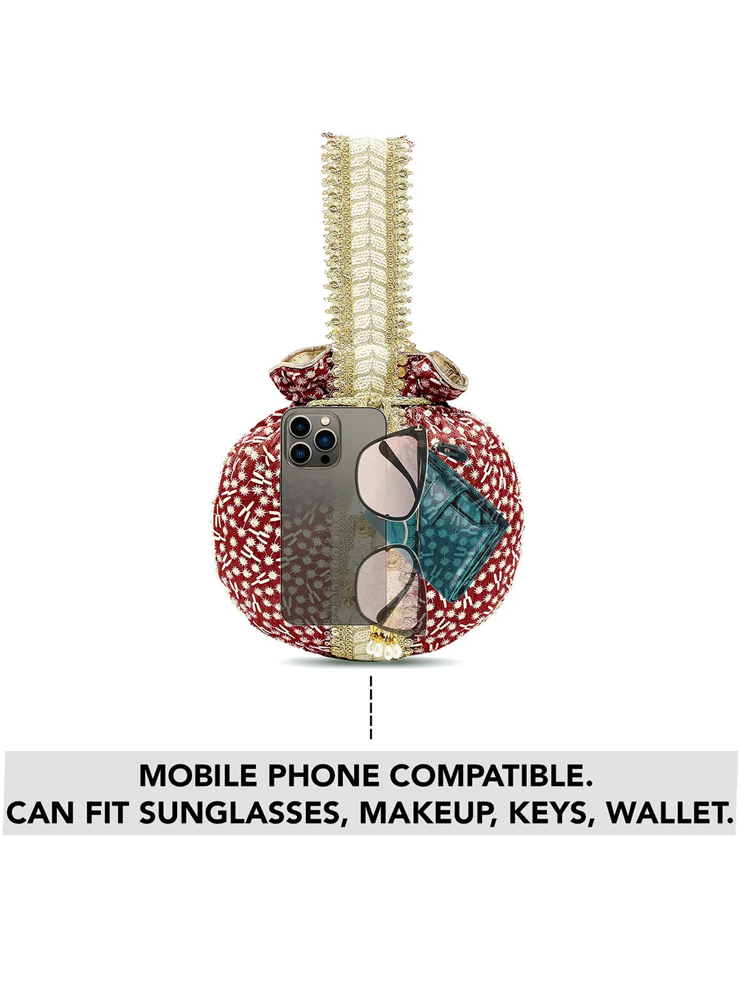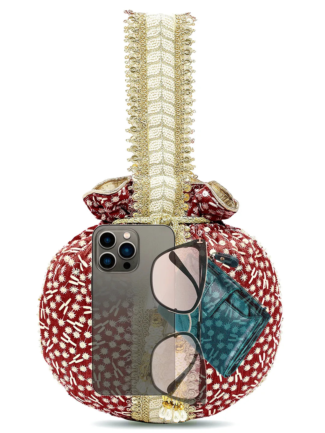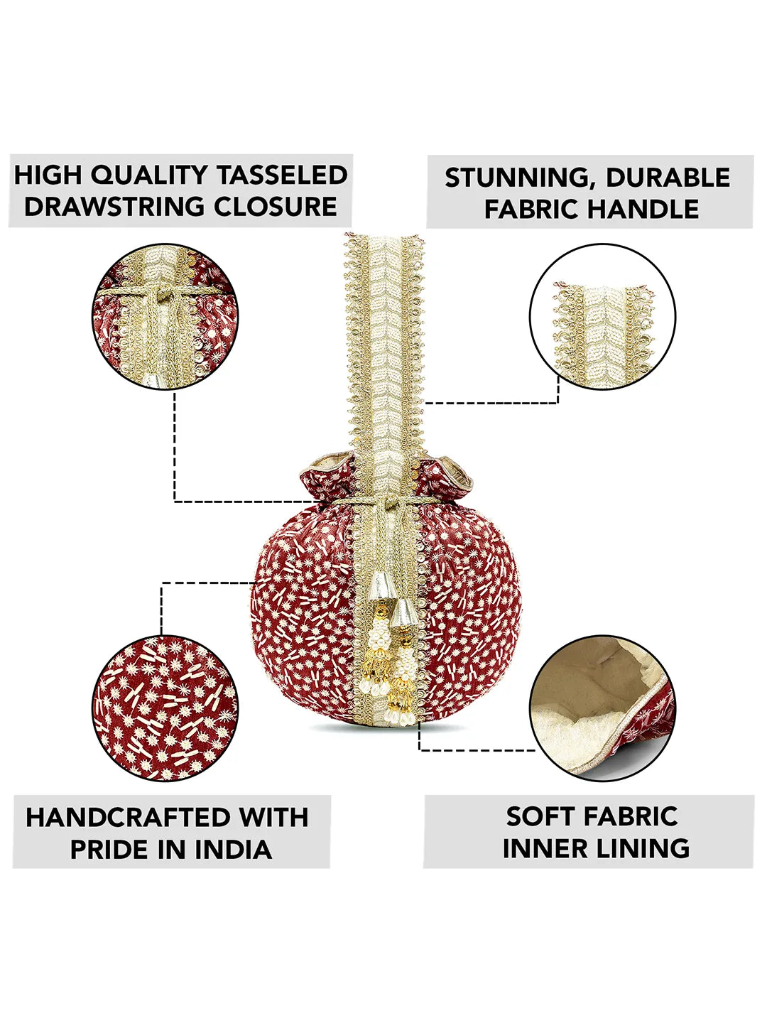 Product Name: Textile Charm Embroidery Potli Bag - Maroon