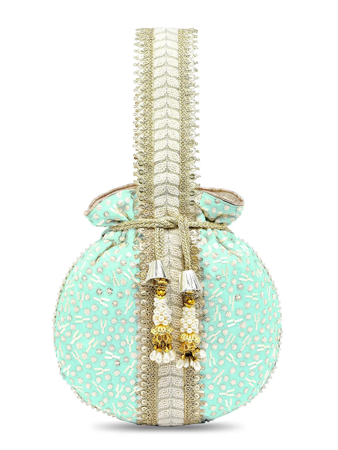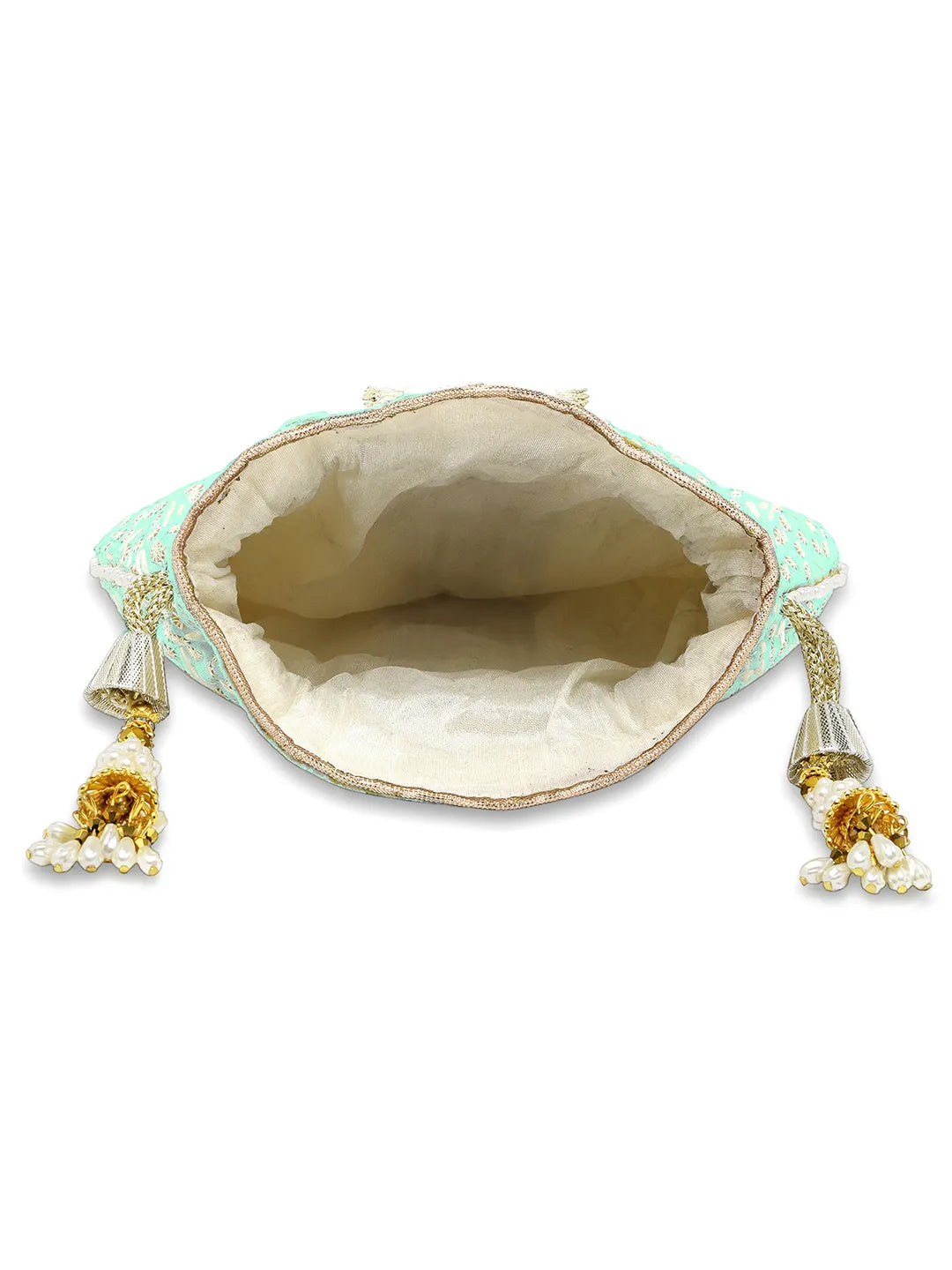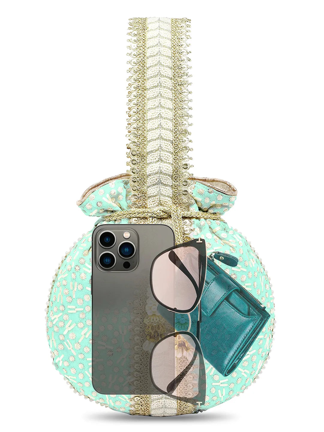 Product Name: Textile Charm Embroidery Potli Bag - Mint