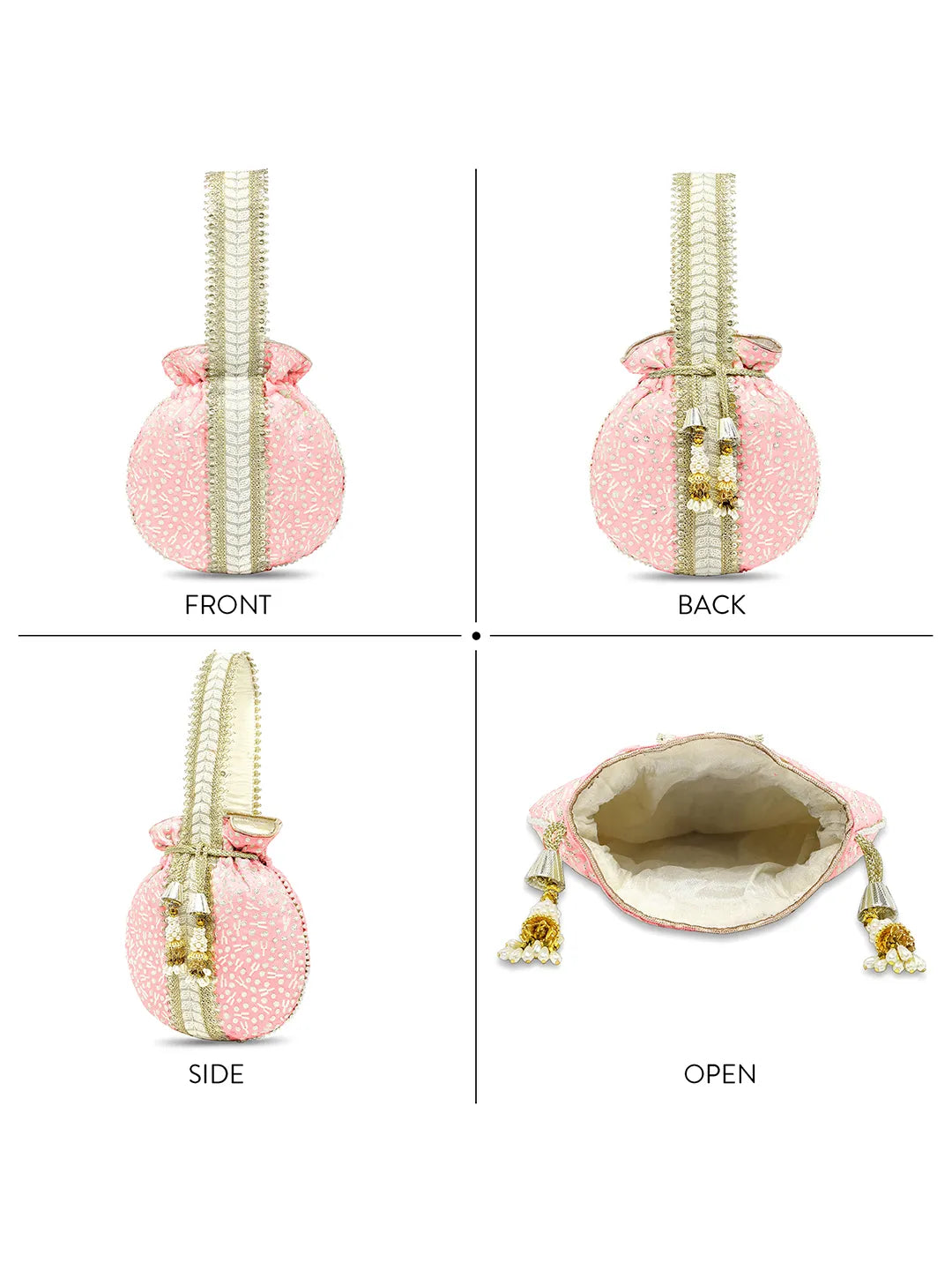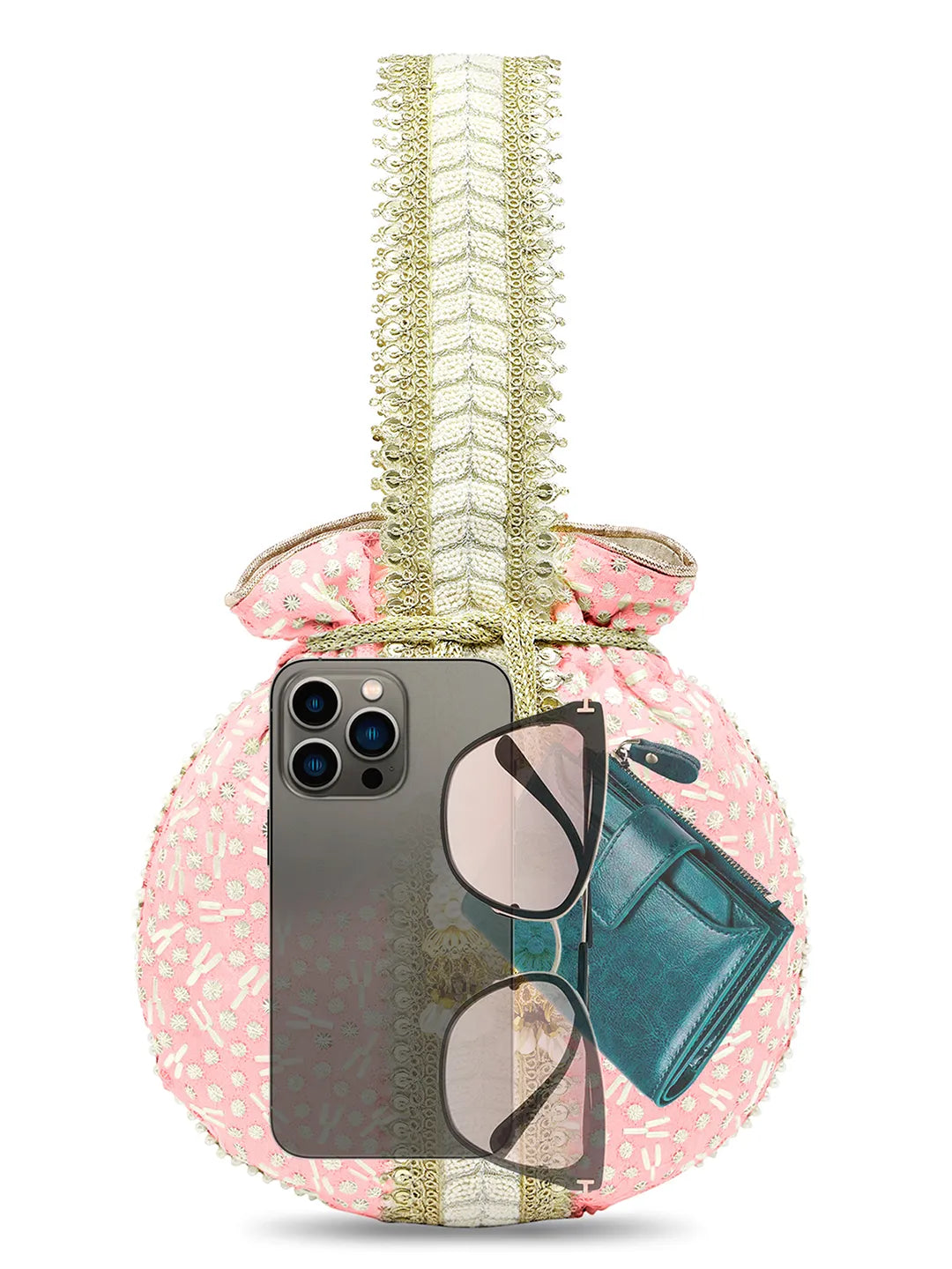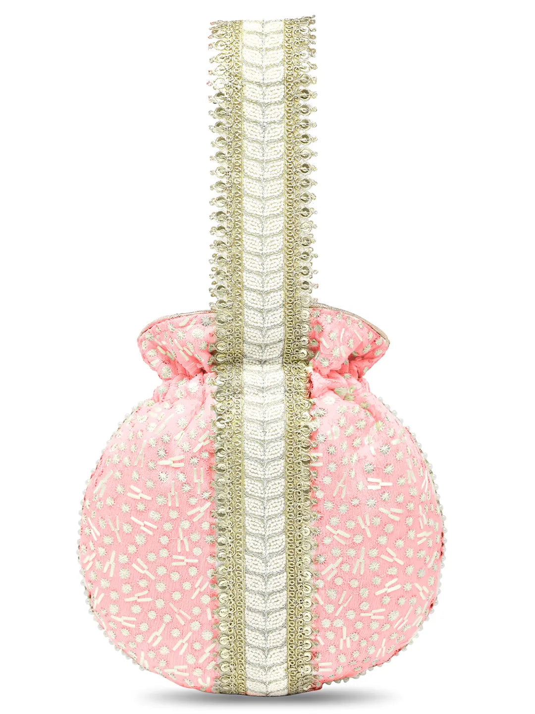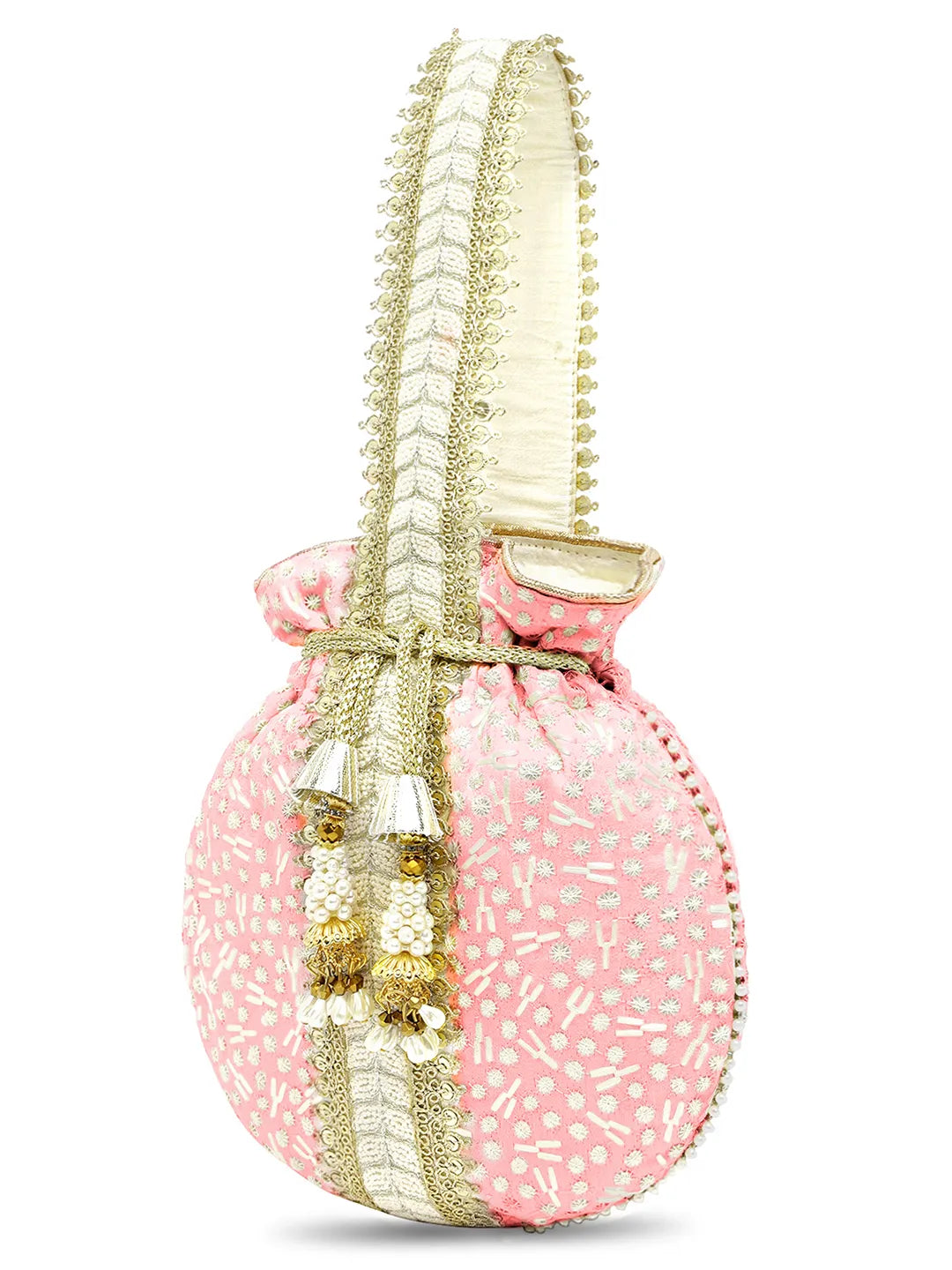 Product Name: Textile Charm Embroidery Potli Bag - Pink