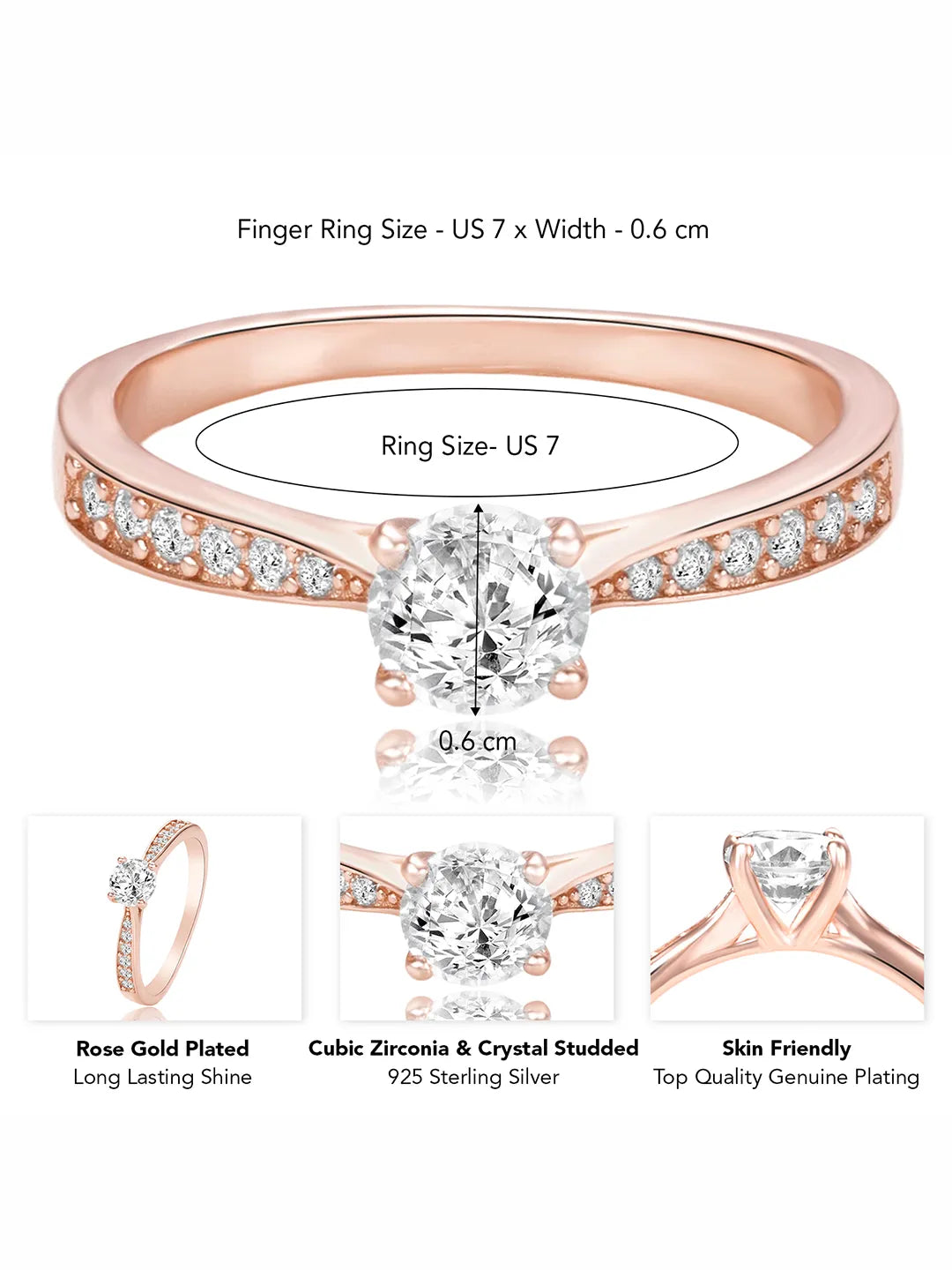 Product Name: Timeless Rose Gold 925 CZ Solitaire Band Ring