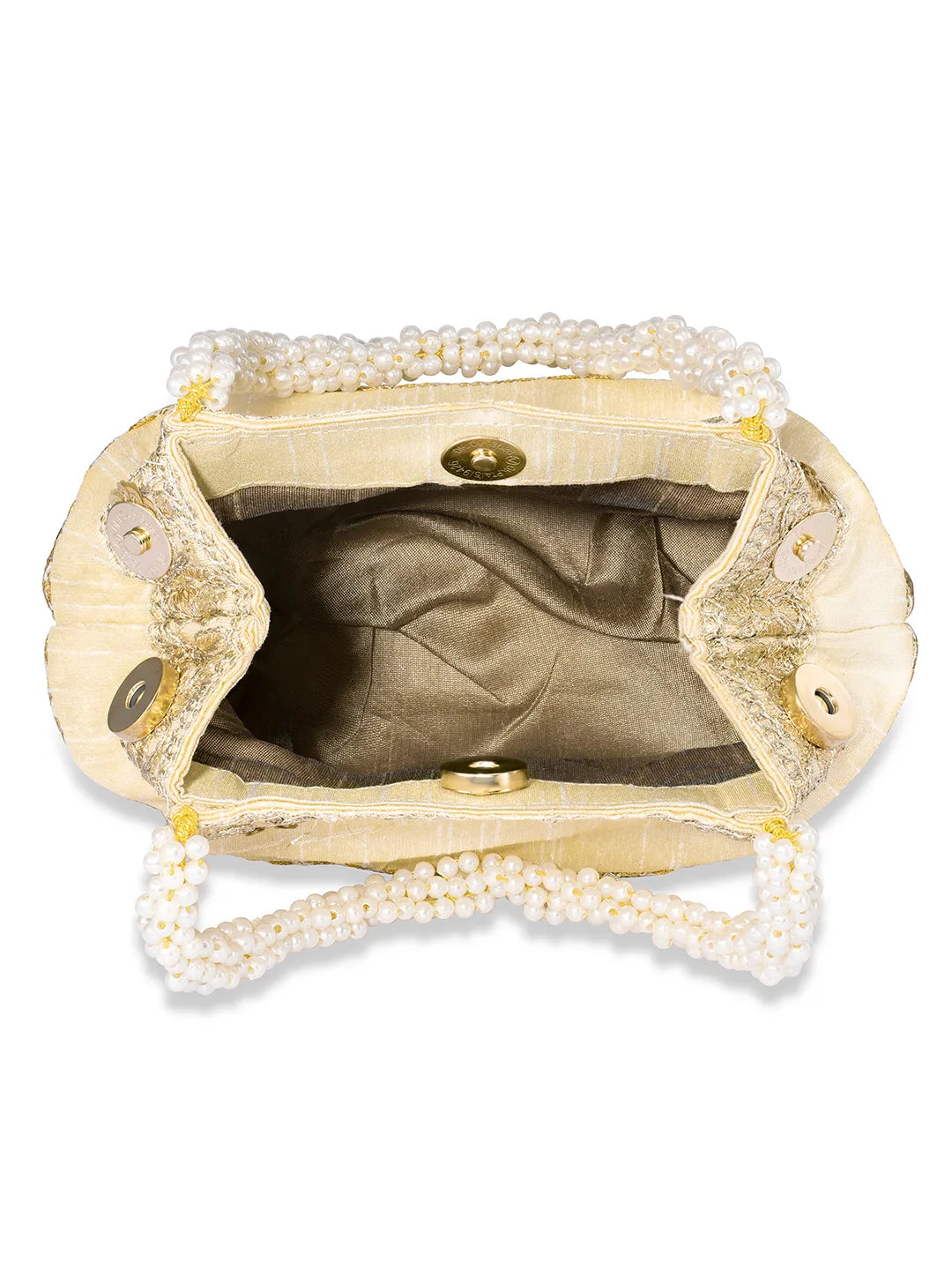 Product Name: Timeless Zari Embroidery Potli Bag - Cream