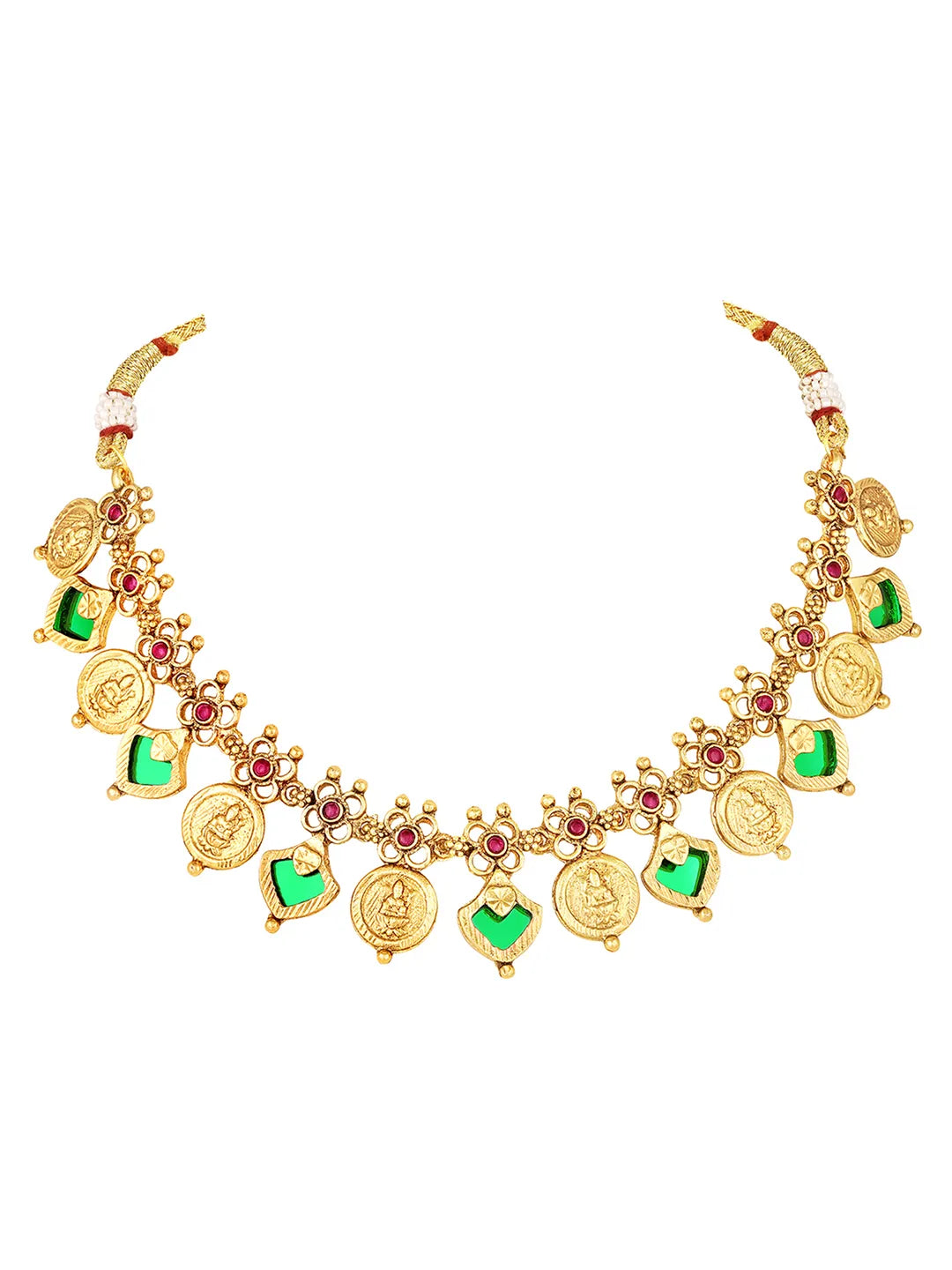 Product Name: Traditional Lakshmi Ruby Emerald Necklace - Gold