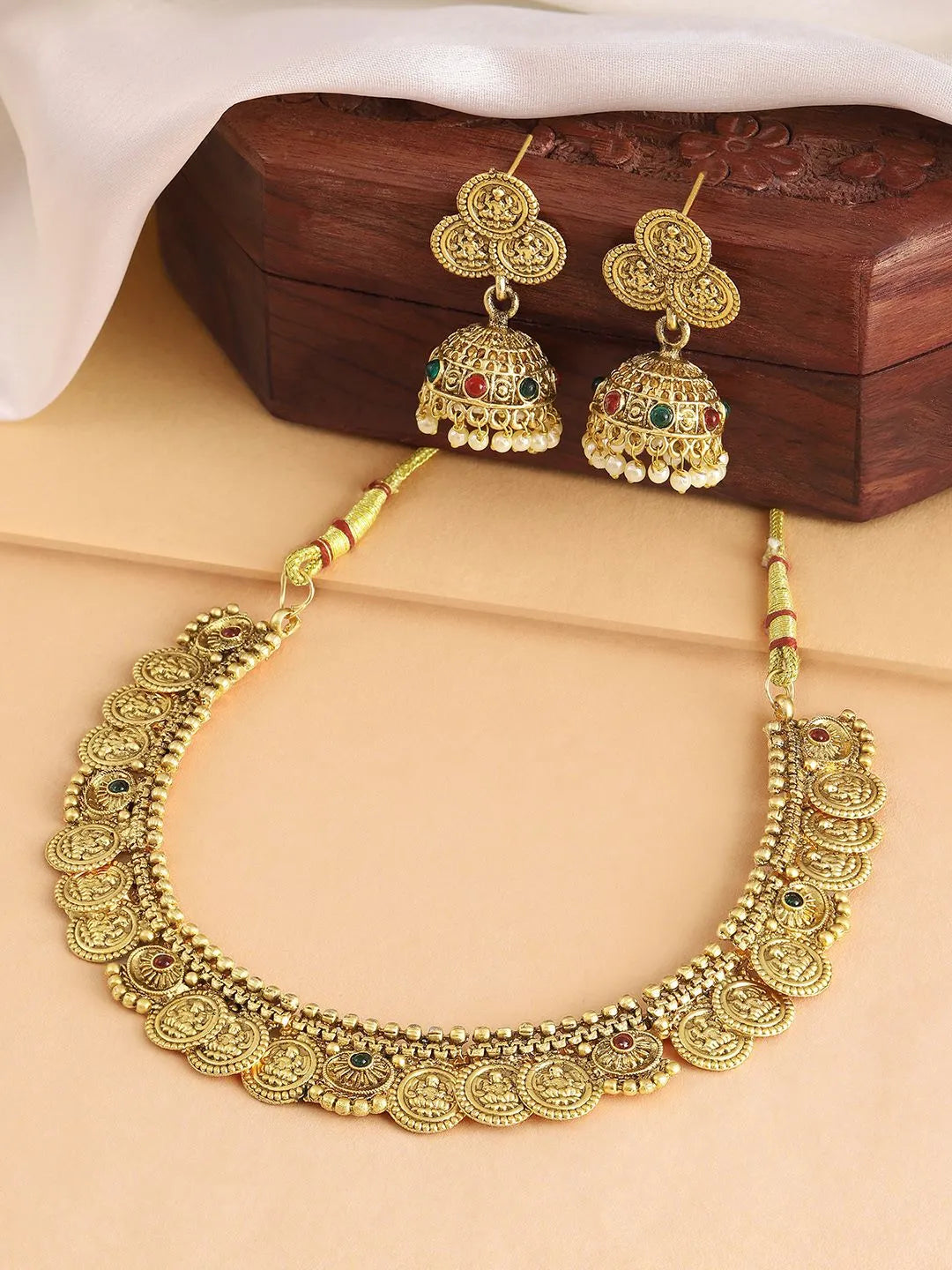 Product Name: Traditional Laxmi Kasu Neckalce Set - Gold