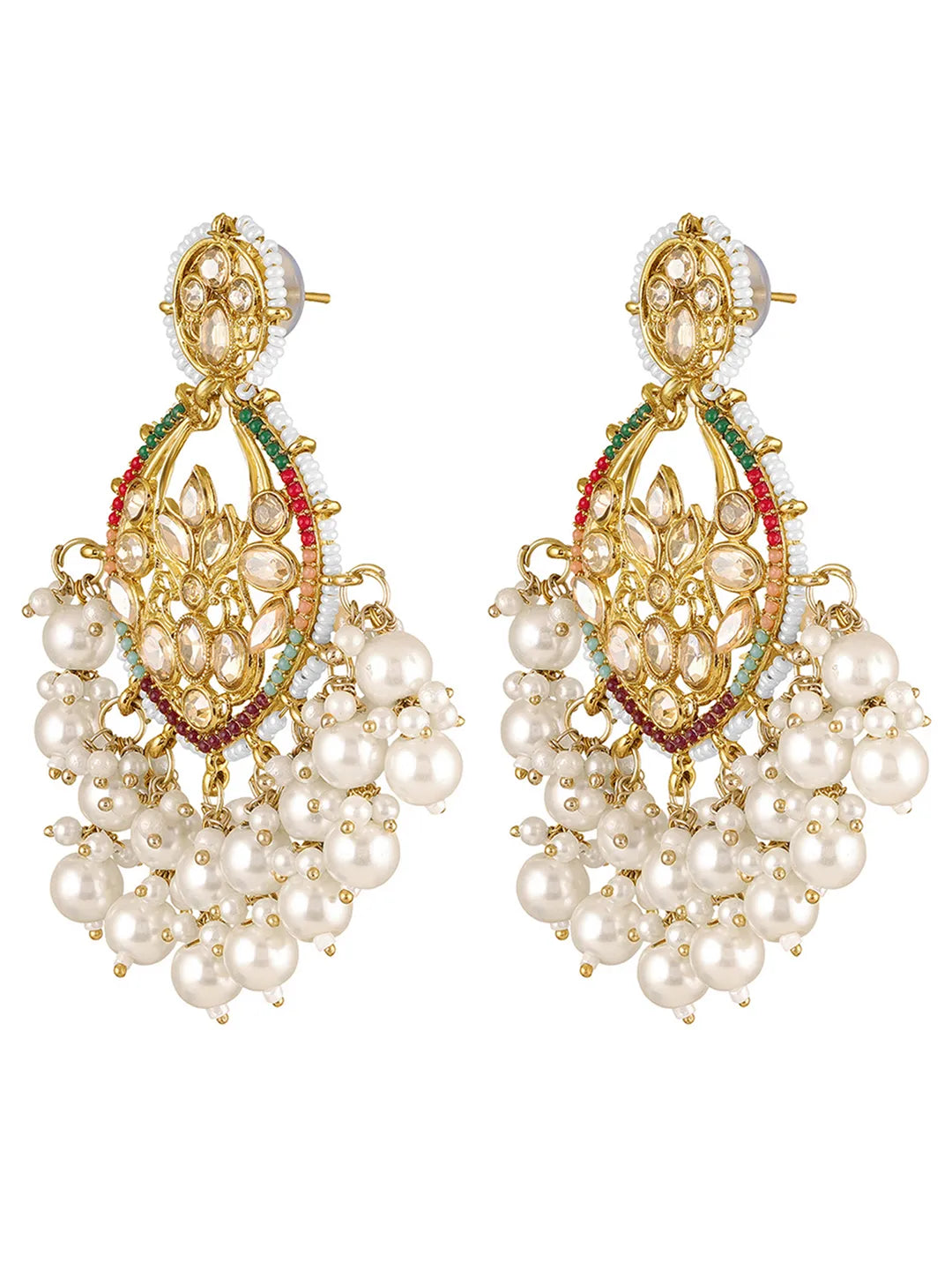 Product Name: Traditional Pearl Crystals Earrings - Champagne