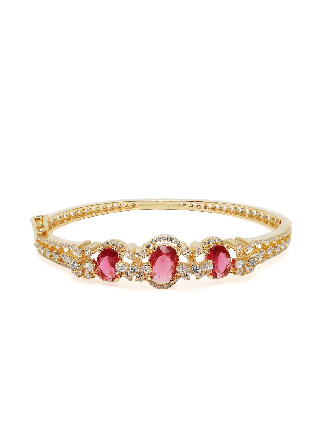 Product Name: Triple Ruby Halo CZ Stone Kada Bracelet - Gold - Red