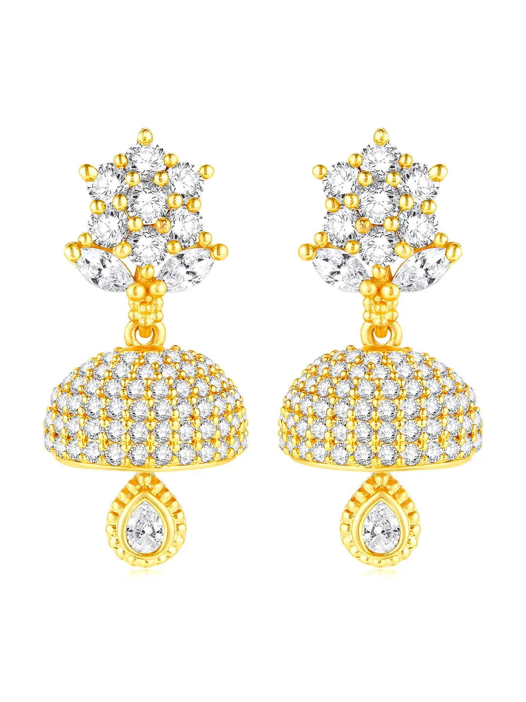 Product Name: Twilight Sparkle CZ Jhumki Earrings - White