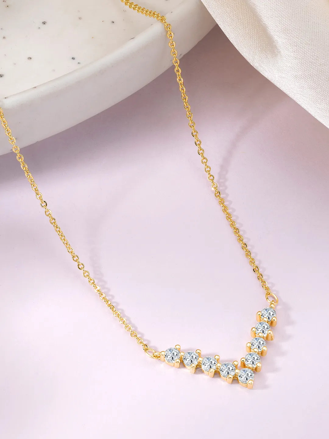 Product Name: V Shaped Crystal Sparkle Pendant Chain - Gold