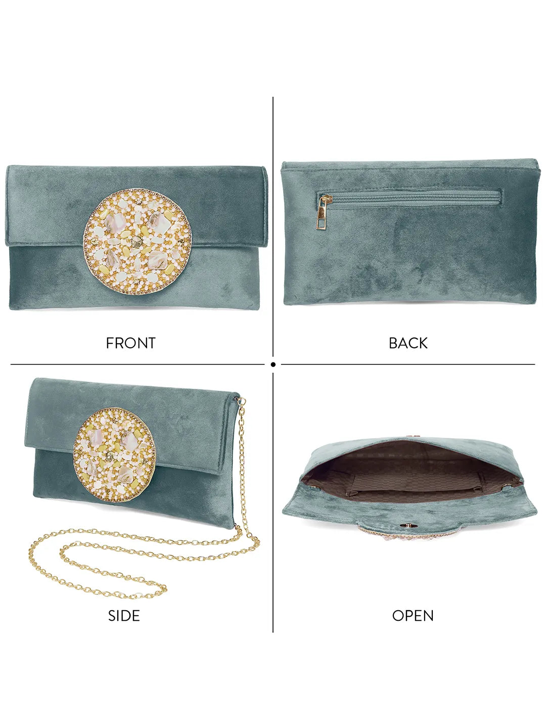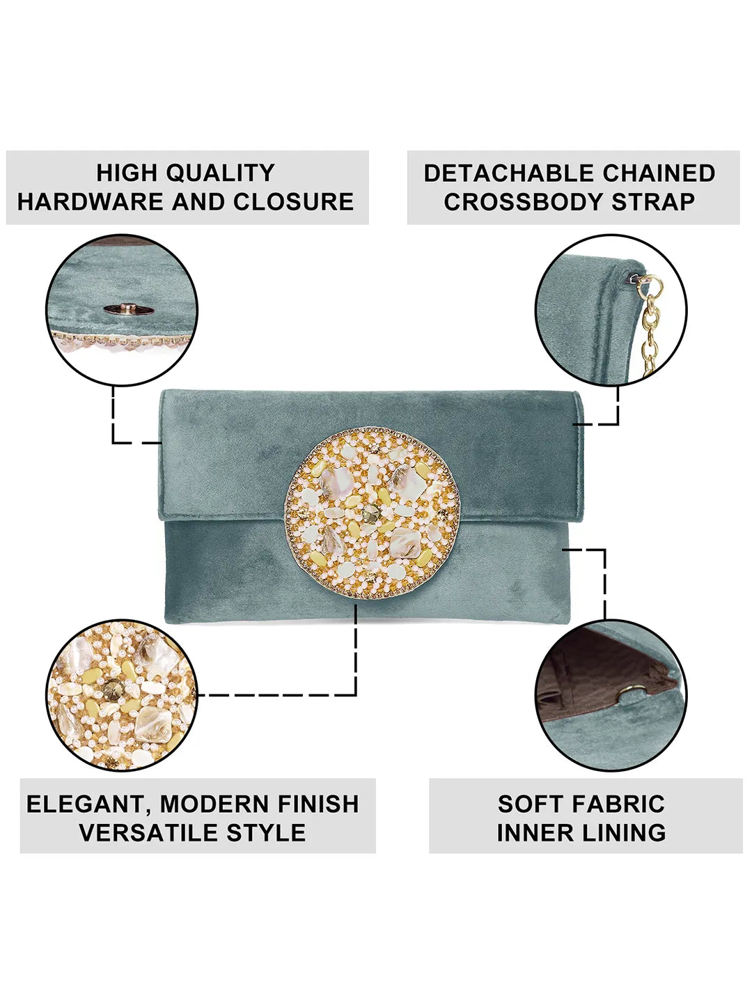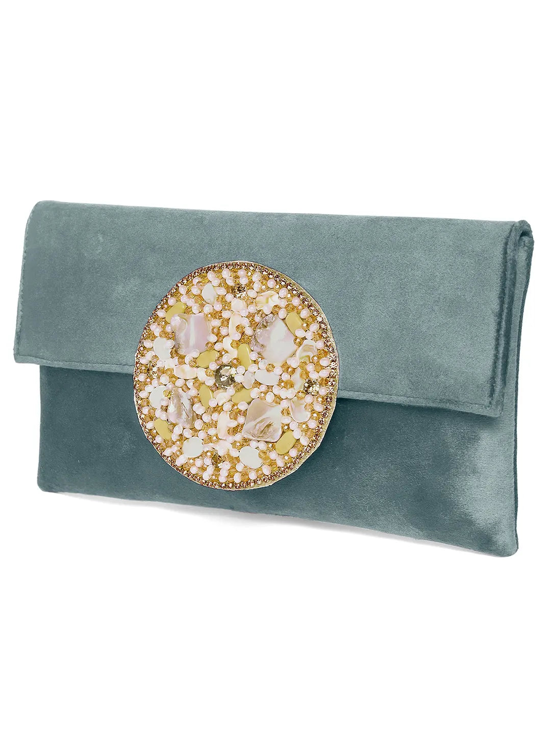 Product Name: Velvet Midnight Aura Flap Clutch - Grey