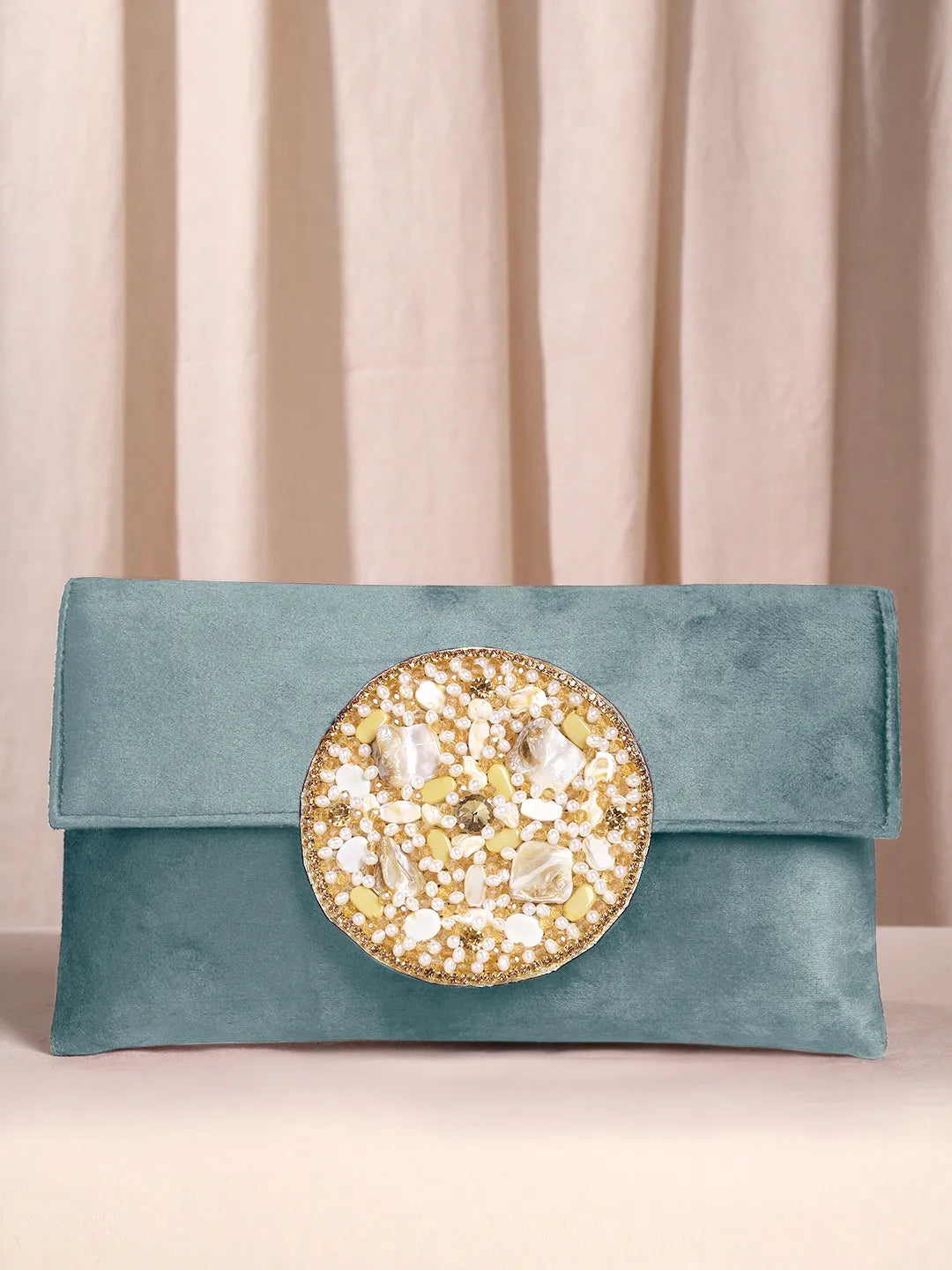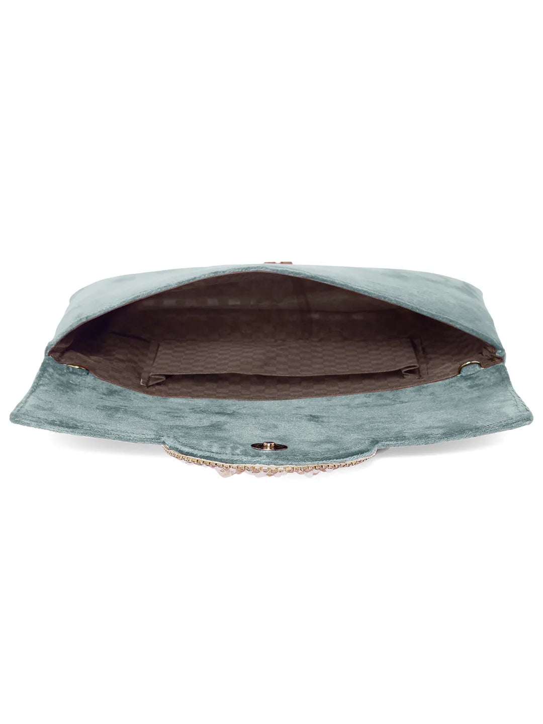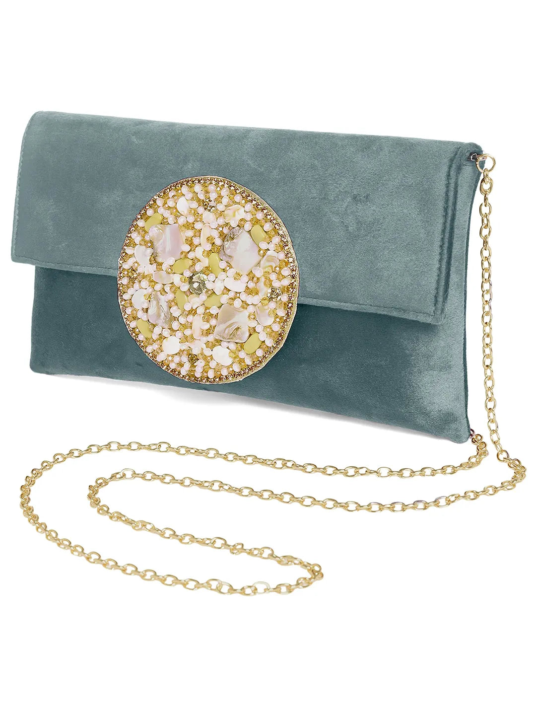 Product Name: Velvet Midnight Aura Flap Clutch - Grey