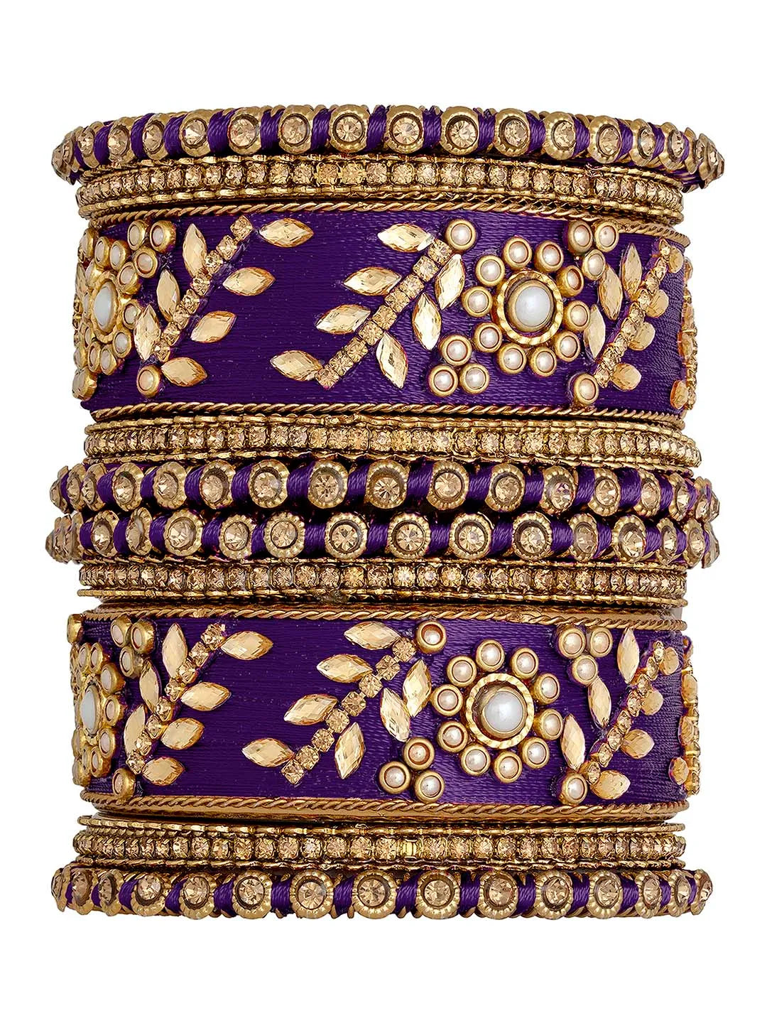 Product Name: Vibrant Kundan Bangles with Silk Threads - Purple