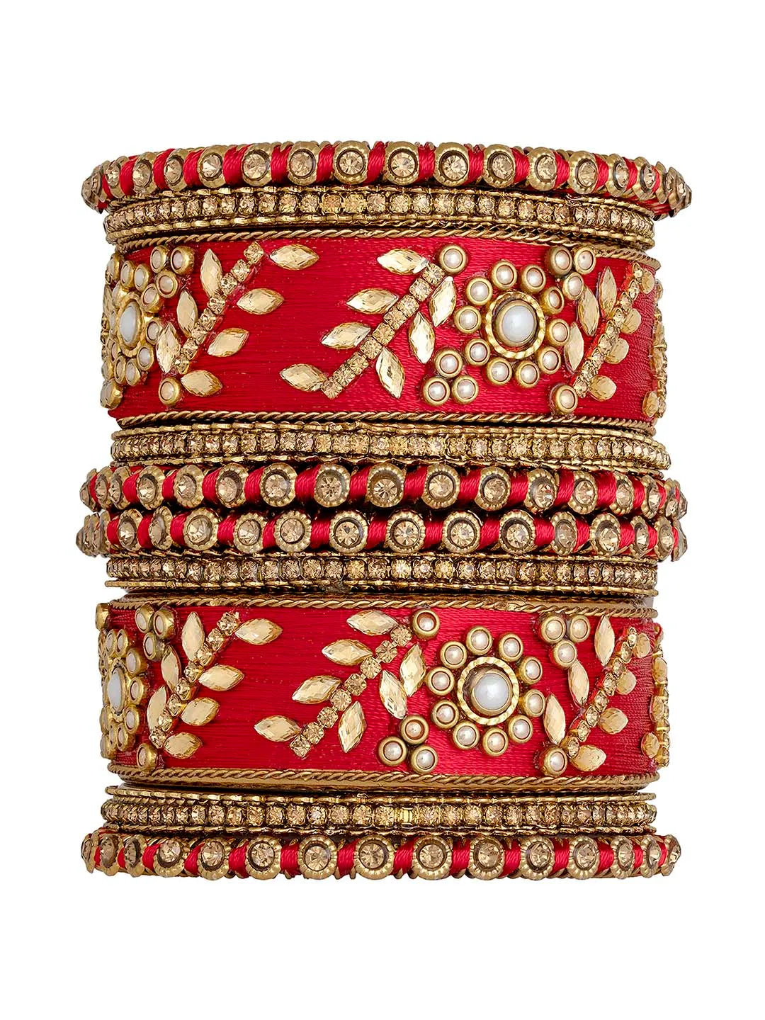 Product Name: Vibrant Kundan Bangles with Silk Threads - Red