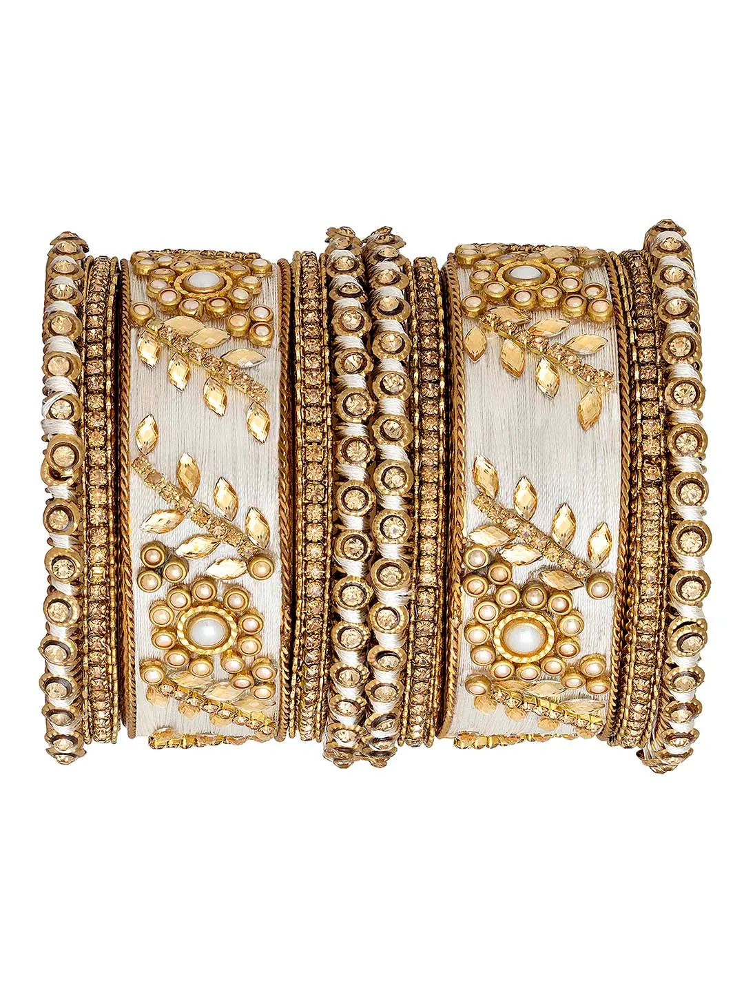 Product Name: Vibrant Kundan Bangles with Silk Threads - White