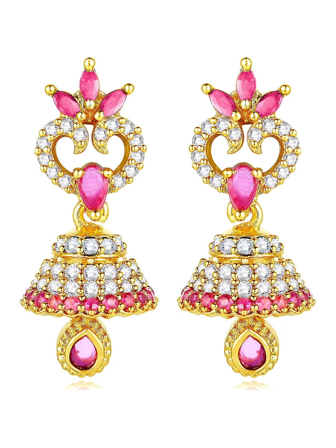 Product Name: Vibrant Sparkle CZ Beauty Jhumki - Rani Pink
