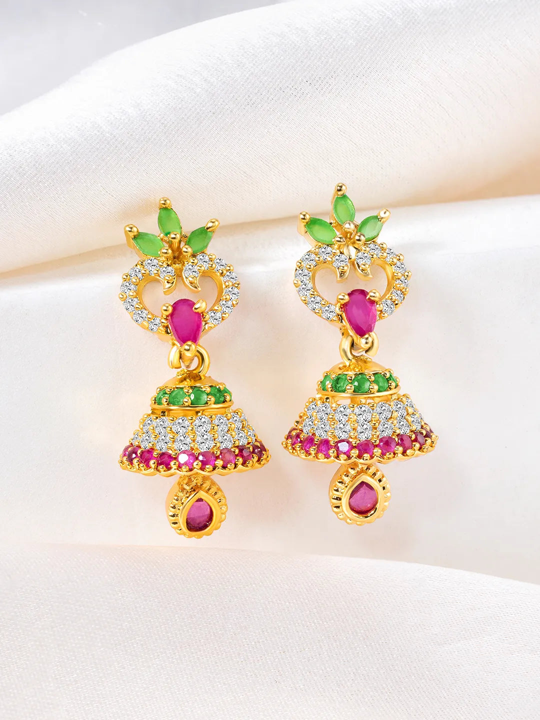 Product Name: Vibrant Sparkle CZ Beauty Jhumki - Rani Pink Green