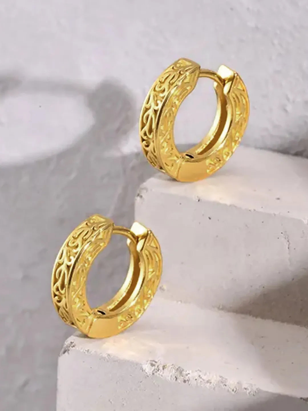 Product Name: Vintage Filigree Huggie Earrings - Gold