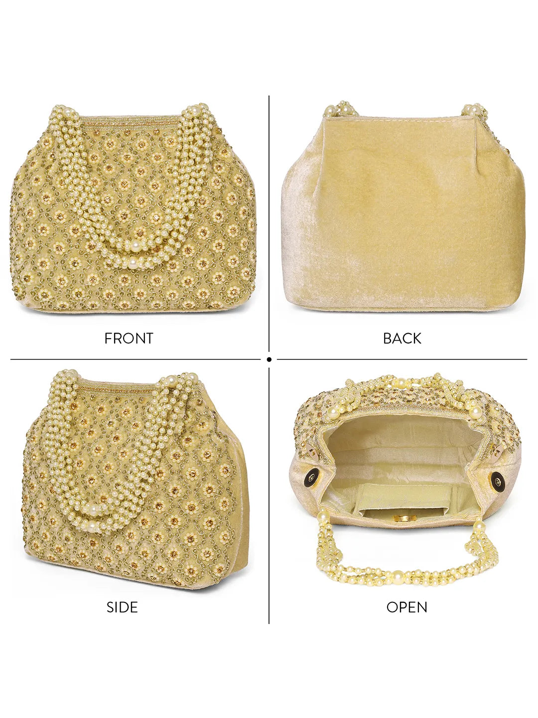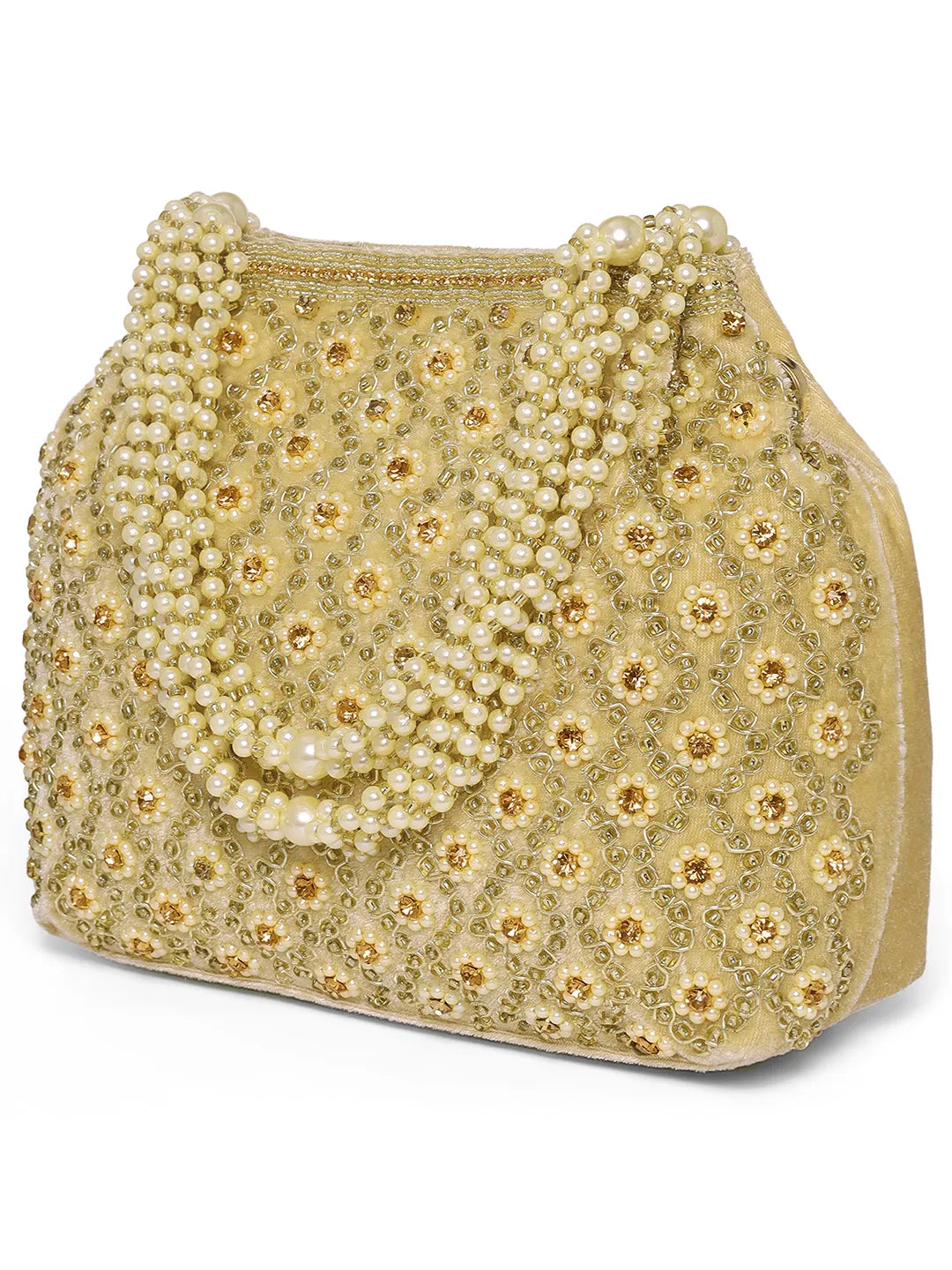 Product Name: Vintage Pearl Embellished Potli - Gold